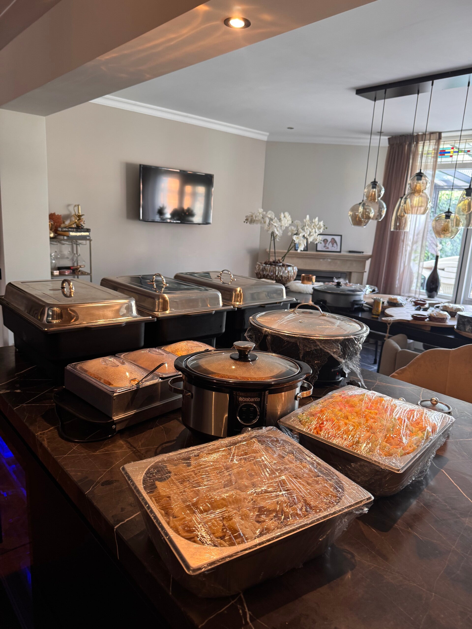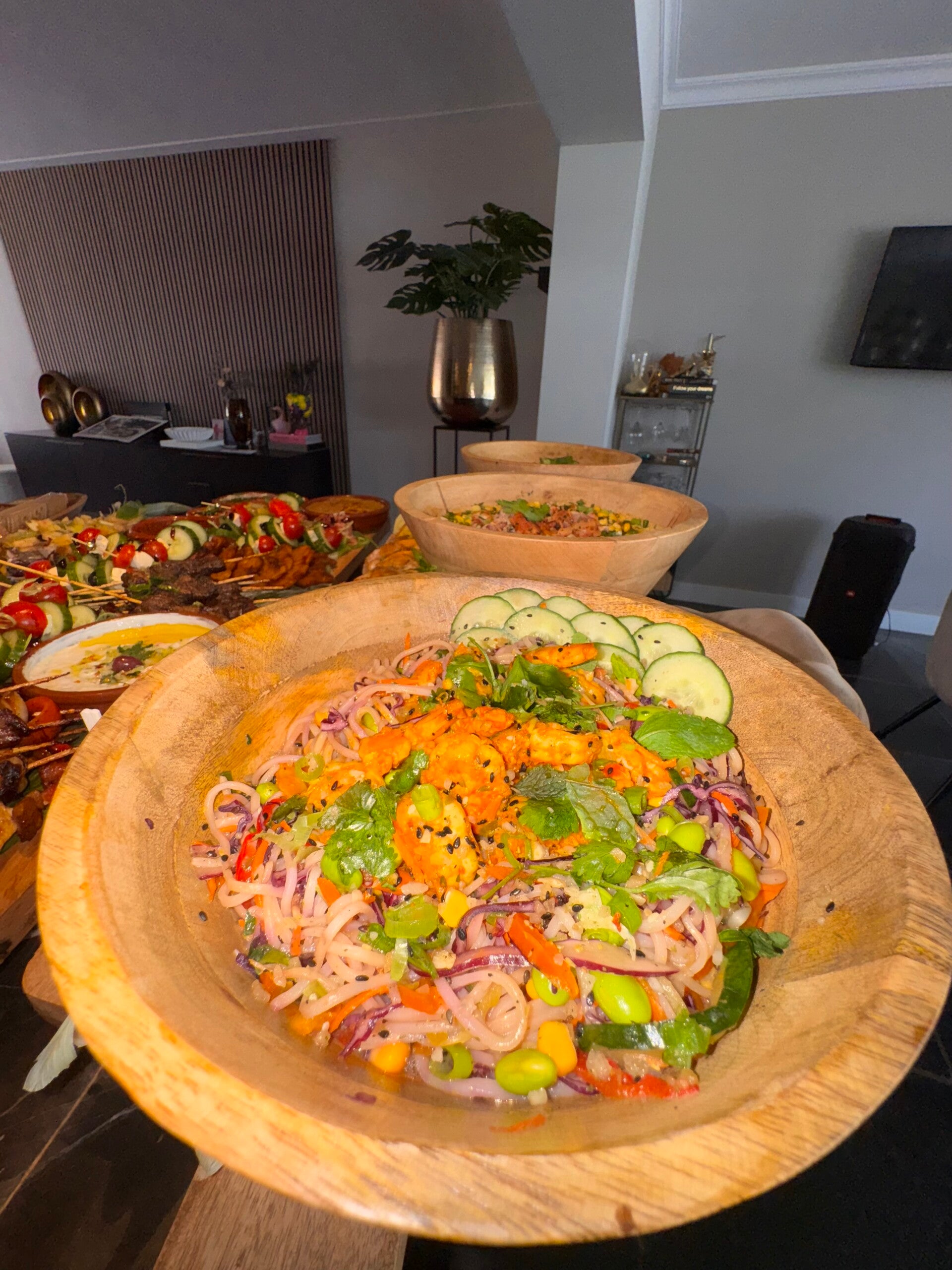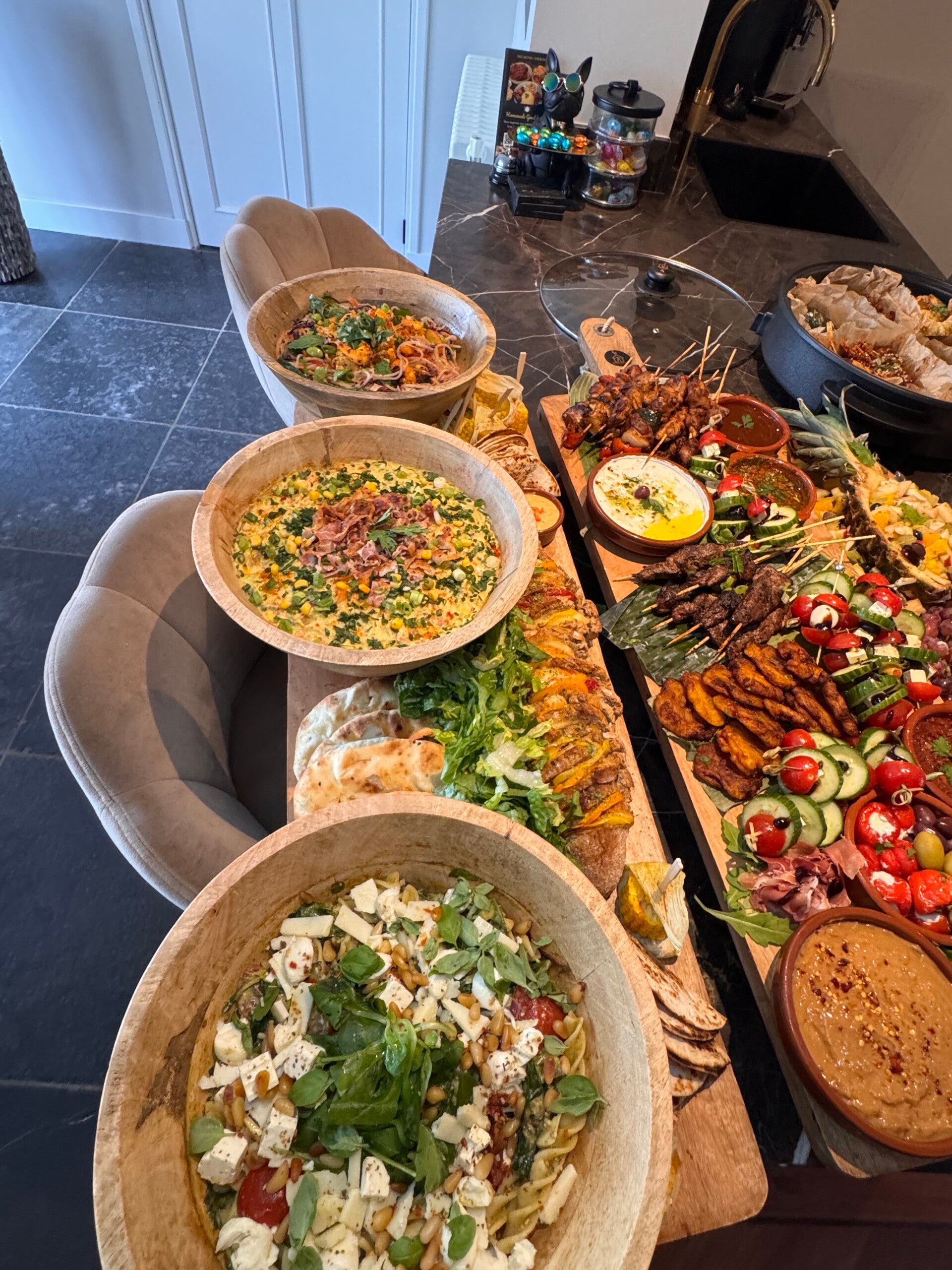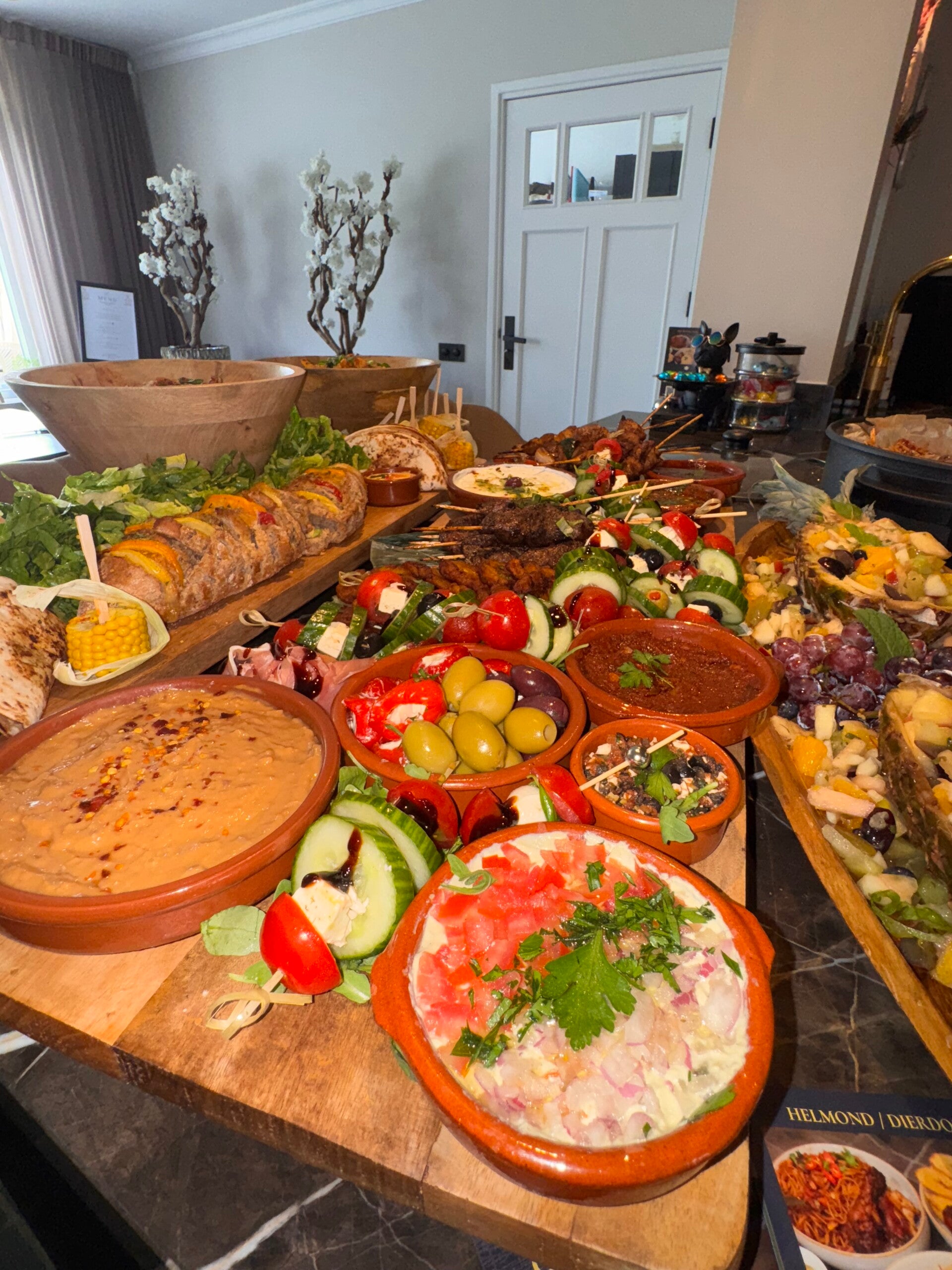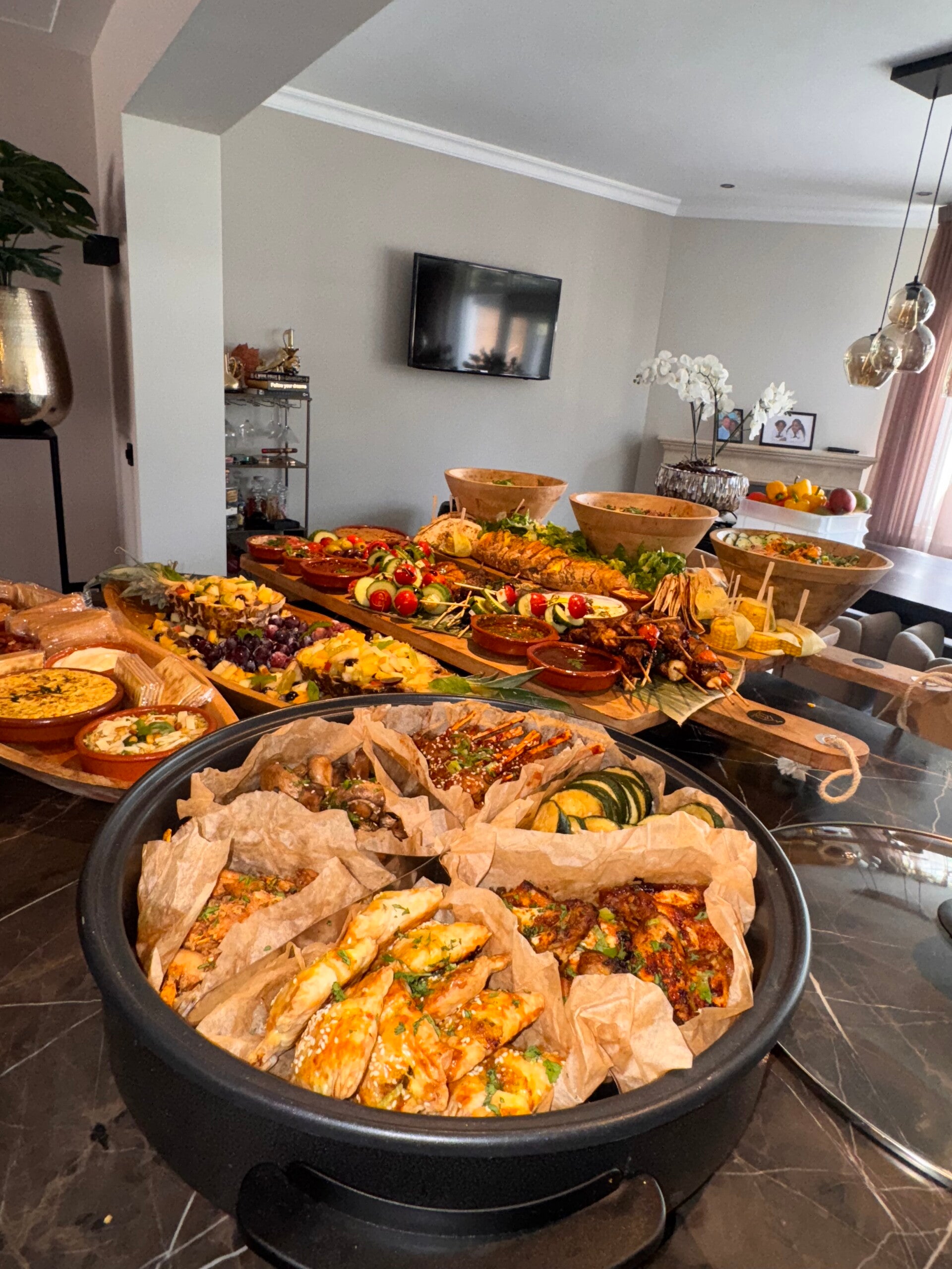 Wij verzorgen een heerlijk compleet buffet/groepsmaaltijd, wat we thuis bezorgen of op elke andere locatie.